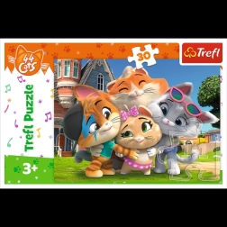 Puzzle Prietenie în țara pisicilor conține 30 de piese și este ideal pentru toți fanii poveștii 44 de Pisici. După asamblare, creează o imagine cu dimensiunile de 27 x 20 cm. Fabricat din materiale de calitate, cu hârtie specială care reflectă lumina, ceea ce facilitează asamblarea.