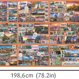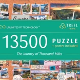 9 puzzle-uri (fiecare cu 1500 de piese) pot fi unite într-o imagine gigantică conform posterului sau puteți crea propria compoziție. Dimensiunea totală conform instrucțiunilor este de 1985,6 x 1376 mm*. Datorită tehnologiei UFT, piesele pot fi unite în moduri diferite, schimbând astfel dimensiunile imaginii finale.