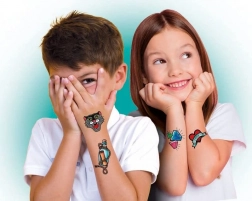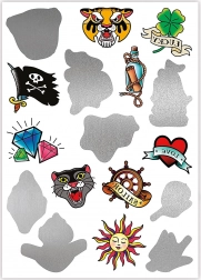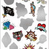 Descoperiți magia tatuajelor misterioase de pirați. Aceste tatuaje unice sunt acoperite cu un strat special, care ascunde designul până la aplicare.