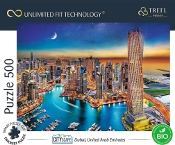 Descoperă asamblarea inteligentă cu puzzle-ul TREFL UFT Cityscape: Dubai de 500 de piese. Datorită Unlimited Fit Technology poți asambla și conecta mai multe motive într-un singur colaj mare, unde tu stabilești granițele. Te așteaptă cea mai înaltă calitate din carton albastru, forme unice ale pieselor și îmbinare stabilă pentru mutarea ușoară a imaginii finalizate. Ambalajul ecologic bio, fără folie din plastic, va bucura pe toți cei care țin la natură.
