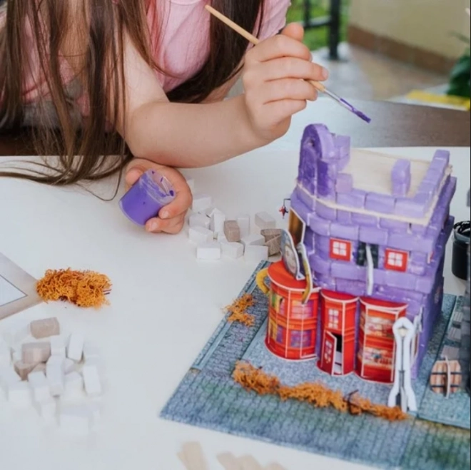 Construiește cărămidă cu cărămidă, taie și lipește scândurele din lemn și creează o clădire solidă și realistă a magazinului legendar de pe Aleea Diagon.