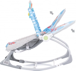 Leagăn practic și confortabil cu vibrații 2‑în‑1 pentru bebeluși încă de la naștere, care funcționează atât ca balansoar, cât și ca scăunel. Oferă vibrații delicate, melodii plăcute, spătar reglabil și arc cu jucării suspendate pentru dezvoltarea motricității și distracție. Siguranța este asigurată de centuri în 3 puncte și o construcție stabilă.