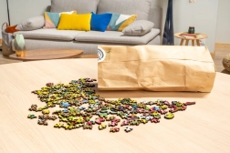 Puzzle-ul este ambalat într-un săculeț practic din hârtie, ceea ce facilitează depozitarea.