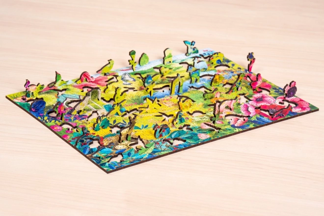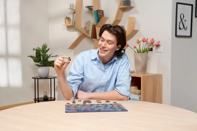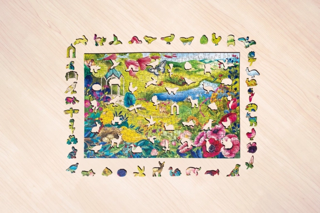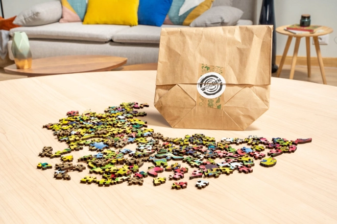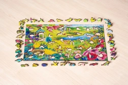 Acest puzzle unic este fabricat din lemn cu un imprimat color de înaltă calitate. Fiecare piesă are o formă complet unică, oferind o construcție palpitantă. Veți găsi aici piese care amintesc de animale, flori și alte obiecte din viața reală.