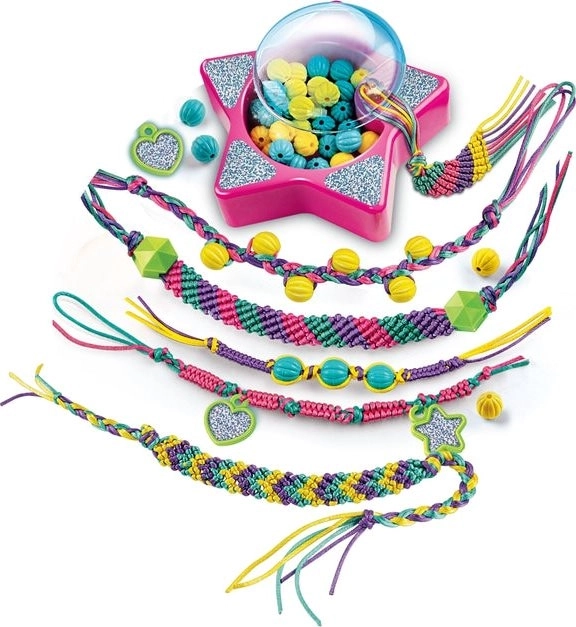 Set pentru realizarea unor brățări ale prieteniei colorate, elegante și la modă! Setul include un instrument special pentru împletirea brățărilor folosind fire colorate și mărgele. Creațiile pot fi îmbogățite cu o mulțime de mărgele colorate! O activitate ludică ce poate fi desfășurată împreună cu prietenii și care garantează distracție.