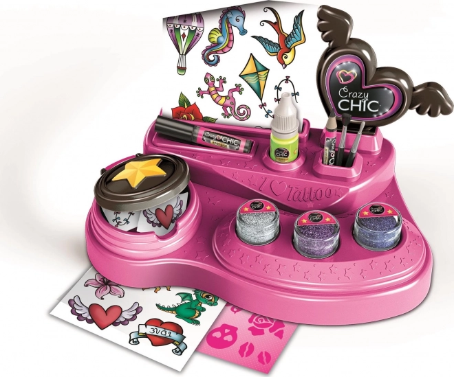 Măsuța de lucru practică cu accesorii ușurează creația. Tatuajele sunt temporare, aderă confortabil și se îndepărtează ușor.