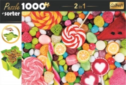 - Puzzle de 1000 de piese cu un motiv atractiv al dulciurilor și dimensiune finală de aprox. 68,3 × 48 cm.
