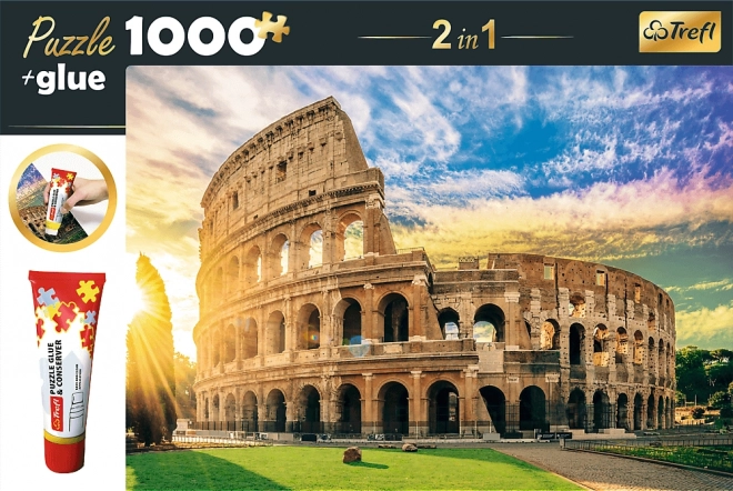 Descoperiți frumusețea Romei asamblând puzzle-ul detaliat cu motivul legendarului Colosseum. Setul 2în1 este ideal pentru iubitorii de puzzle-uri care doresc să își fixeze și expună lucrările finalizate. Include un adeziv practic care se întinde uniform direct pe suprafața imaginii și, după uscare, formează un film solid și transparent.
