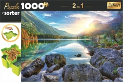 Set complet pentru iubitorii de puzzle-uri: puzzle cu motivul pitoresc al lacului Hintersee din Germania și un sortator practic pentru piese, într-un singur pachet. Conține 1000 de piese pentru relaxare și șase recipiente stivuibile în formă de piesă de puzzle pentru sortare rapidă și clară după forme sau culori.