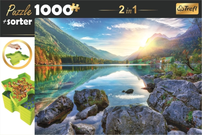 Bucurați-vă de motivul frumos al lacului Hintersee și de asamblarea mai confortabilă datorită sortatorului inteligent. Pachetul include un puzzle de 1000 de piese și un sortator cu 6 recipiente, care ajută la organizarea pieselor, grăbesc căutarea și mențin ordinea pe masă.