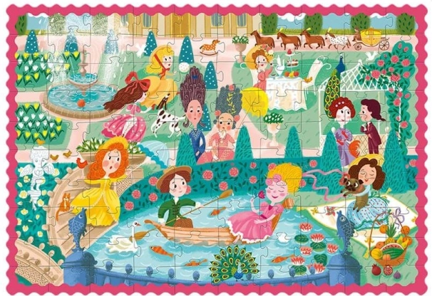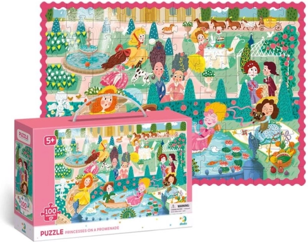 Descoperă lumea fermecătoare a prințeselor cu puzzle-ul pentru copii DODO, care impresionează prin culori vii și o imagine detaliată de pe promenada din grădină. Asamblarea celor 100 de piese în formatul mare 65 × 45 cm este ideală pentru copii de la 5 ani – suficient de provocator, dar în continuare distractiv.