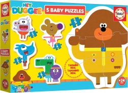 Porniți într-o aventură cu cinci puzzle-uri progresive cu trei până la cinci piese. Piesele mari și robuste asigură o prindere ușoară pentru mâinile mici și ajută la dezvoltarea imaginației copiilor. Puzzle-urile nu doar stimulează curiozitatea, ci și sprijină dezvoltarea abilităților psihomotorii.