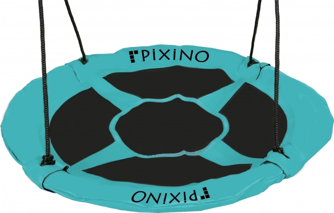 Leagăn rotund cuib de barză în design elegant turcoaz-negru este ideal pentru distracție atât în exterior, cât și în interior. Este rezistent la condițiile meteorologice și oferă legănare sigură și confortabilă pentru copiii dumneavoastră.