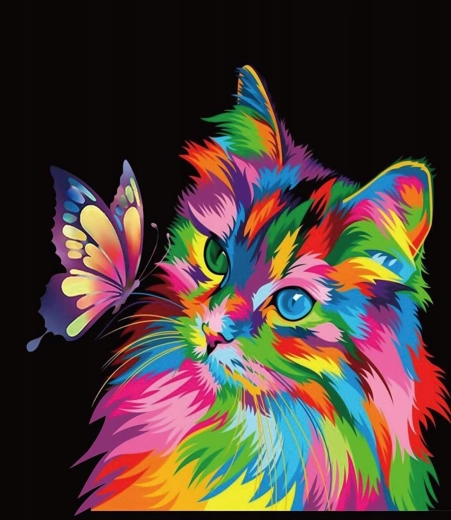 Set pentru pictură cu diamante - pisicuță curcubeu cu fluturaș