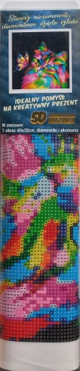 Pictura cu diamante - instrucțiuni: Partea superioară a pânzei este acoperită cu adeziv și protejată cu o folie transparentă. Îndepărtați folia treptat, pe porțiuni, pe măsură ce aplicați pietricelele. Dacă îndepărtați toată folia dintr-o dată, stratul adeziv se poate murdări și pietricelele s-ar putea să nu mai adere bine. Pânza conține simboluri care sunt indicate în legenda inclusă și corespund fiecărui săculeț de pietricele marcat cu număr. Turnați pietricelele din săculețul respectiv în tăviță. Introduceți vârful stiloului în ceară, datorită căreia pietricelele se prind ușor de stilou. Aplicați pietricelele cu stiloul pe imagine. După lipirea culorii respective, turnați pietricelele înapoi în săculeț și continuați cu următoarea culoare.