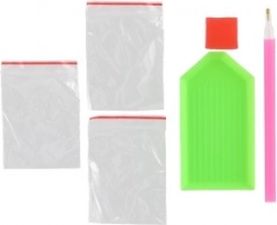 - Echipare completă – pânză cu model, pix aplicator, tăviță, ceară și set de pietricele.