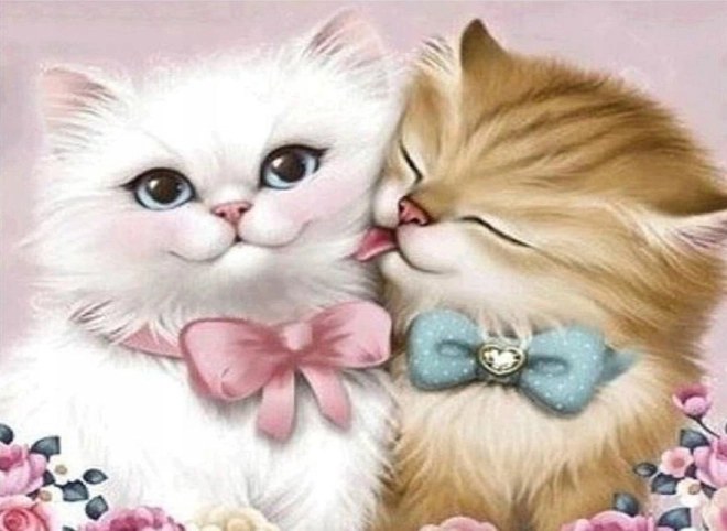 - Rezultatul este un tablou sclipitor cu motiv romantic al pisicilor îndrăgostite.
