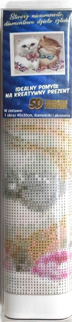 Descoperă farmecul relaxării cu setul creativ de pictură cu diamante cu motivul pisicilor îndrăgostite, în dimensiunea 30 × 40 cm. Setul complet conține tot ce ai nevoie – pânză cu motiv pretipărit, stilou de aplicare, pietricele colorate, tăviță și ceară. Activitatea este ușoară, distractivă și potrivită atât pentru începători, cât și pentru avansați – fără a fi necesare abilități artistice.