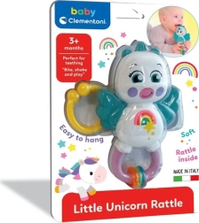 Drăgălașa zornăitoare interactivă în formă de unicorn stimulează simțurile și distrează bebelușul acasă și în călătorii. Inelul moale pentru dentiție sub formă de aripioare calmează gingiile iritate, în timp ce texturile și materialele variate susțin dezvoltarea tactilă. Insertul zornăitor integrat stimulează auzul, iar bucla practică permite agățarea ușoară oriunde.