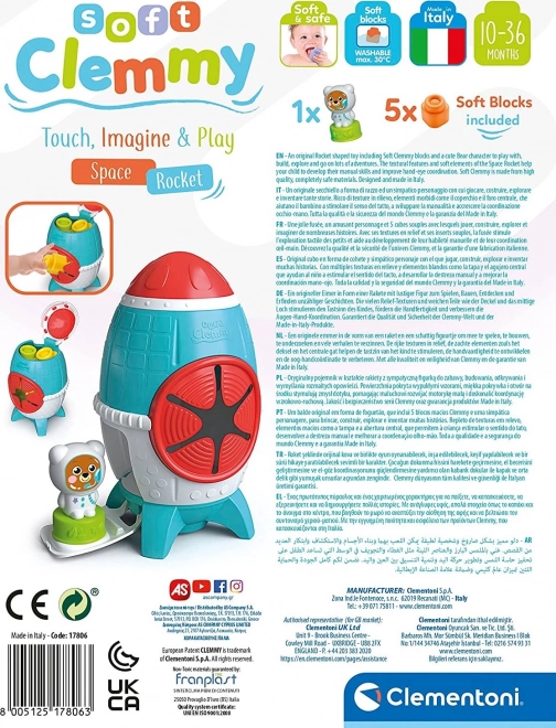 Această cutie colorată Soft CLEMMY în design de rachetă spațială oferă copiilor de 10–36 luni un mediu sigur și stimulant pentru primele activități de construit și descoperit. Cuburile moi sunt plăcute la atingere, ușor de strâns și, datorită suprafețelor texturate, stimulează excelent simțul tactil. Figurina ursuleț‑cosmonaut poate fi pusă pe cuburi și integrată în jocuri creative și tematice.