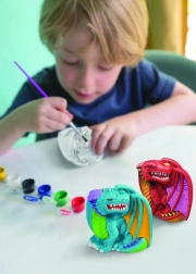 Setul permite copiilor să-și dezvolte creativitatea în timp ce creează propriul design al dragonilor folosind culori.