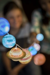 Construiește-ți propriul mini planetariu luminos. Asamblează planetele, decorează-le și aprinde-le. Setul dezvoltă creativitatea copiilor.