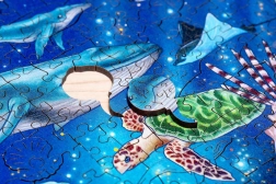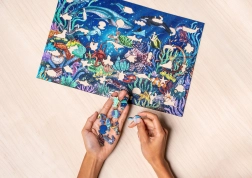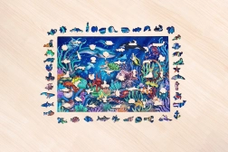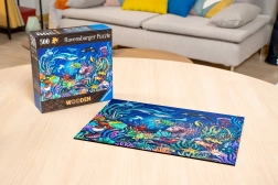 Fă-ți timp pentru tine și cufundă-te în fascinantul motiv al oceanului plin de pești, corali și vietăți marine. Puzzle-ul din lemn cu 500 de piese oferă o combinație de execuție de calitate, design elegant și distracție bine gândită pentru întreaga familie. Datorită formelor tăiate cu precizie, inclusiv pieselor care amintesc de animale și plante, asamblarea este ingenioasă și captivantă.