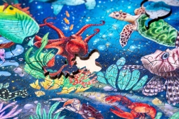 Imprimarea color de calitate pe lemn oferă nuanțe intense și detalii fine care evidențiază frumusețea lumii subacvatice.
