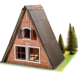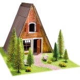 Design A‑frame cu ferestre și uși, atrăgător pentru micii constructori și pentru modeliştii adulți. O introducere excelentă în lumea arhitecturii.