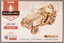 Bucurați-vă de asamblarea unui model complex de jeep militar, care oferă ore întregi de distracție creativă. Modelul complet asamblat, fără a necesita lipici, oferă următoarele funcții: