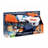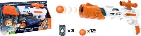 - 1× pistolă, 12× bilă din spumă, 3× țintă