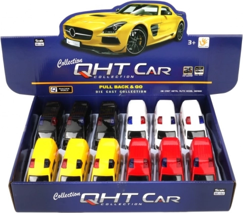 Mașinuță 1:34 cu mecanism pull-back. Trage înapoi și pornește înainte fără baterii. Excelentă pentru curse, jocuri pline de acțiune și colecție. Jucărie rezistentă și distractivă.