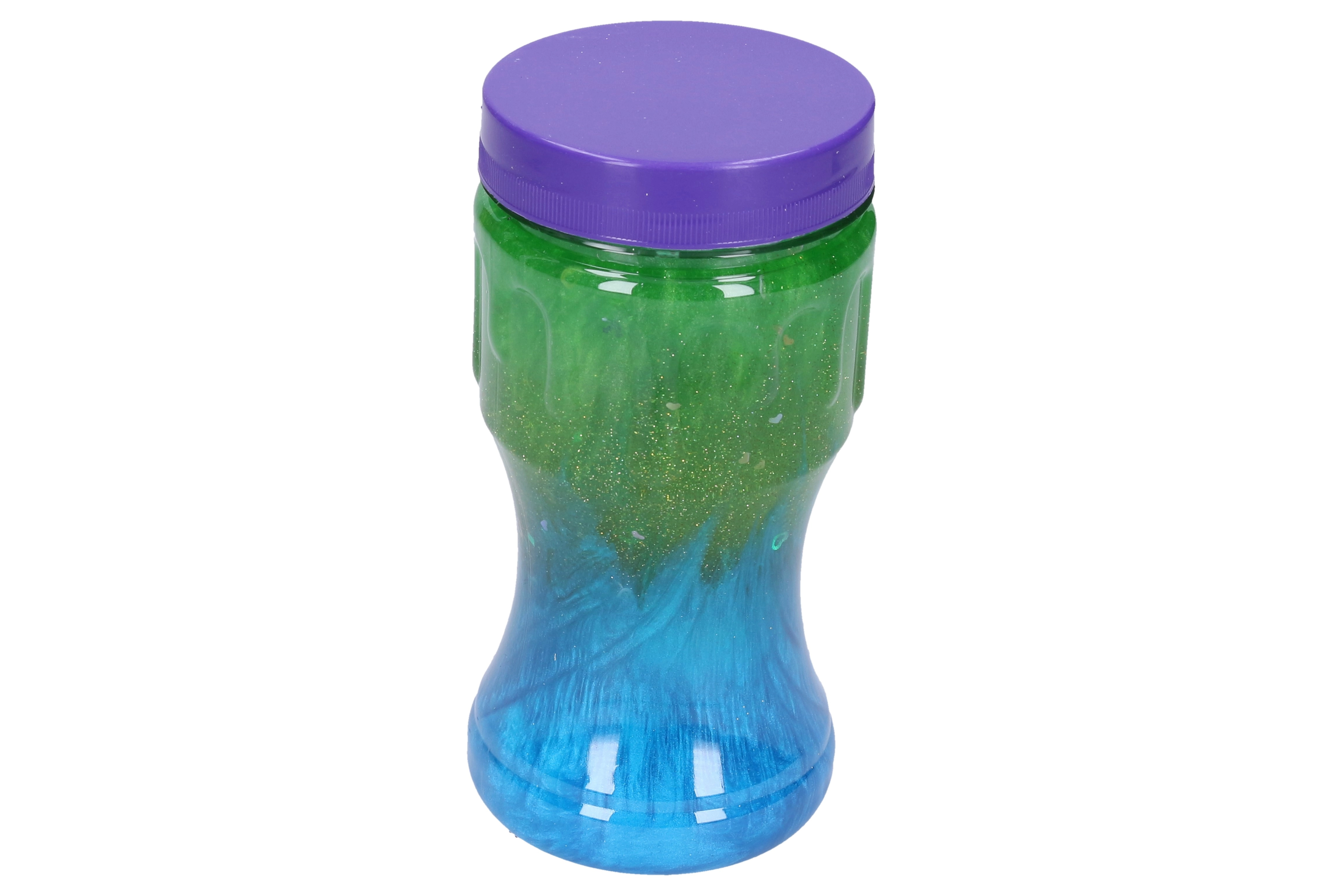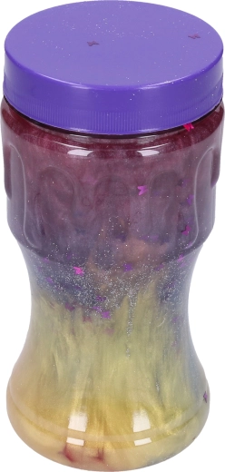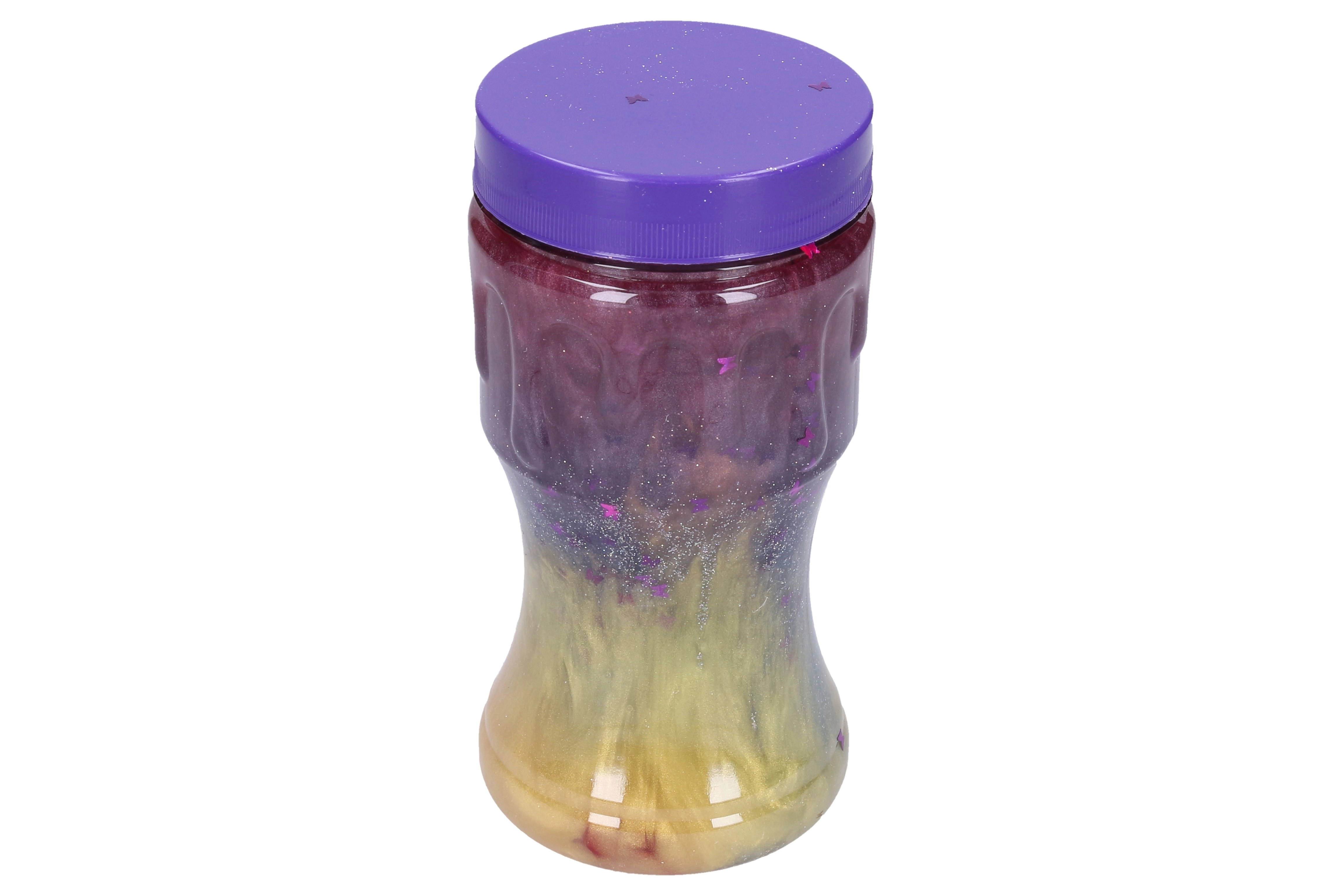 Vârtejuri multicolore cu sclipici și steluțe creează un spectacol vizual uimitor la fiecare mișcare a slime-ului.