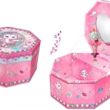 Fermecătoarea cutie muzicală pentru bijuterii, octogonală, cu motivul pisicii balerine, va încânta orice copil. La deschidere, figurina începe să se învârtă și se aude o melodie clasică. Cutia are oglindă, spațiu pentru mărunțișuri și funcționează cu mecanism pe arc, fără baterii.