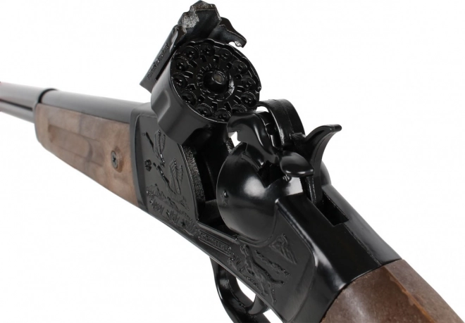 Pușcă de cowboy din metal pentru 12 cartușe, cu tambur.