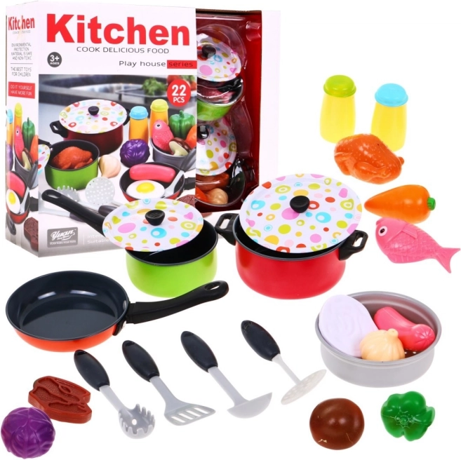 Set colorat de gătit pentru copii de la 3 ani include 22 de bucăți de unelte de bucătărie realiste. O distracție grozavă pentru micul tău bucătar sau bucătăreasă, susținând dezvoltarea imaginației și abilităților manuale.