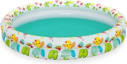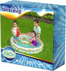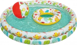 Siguranța și durabilitatea sunt asigurate de vinilul de calitate, testat, și de cele două camere de aer separate în formă de inele. Setul este completat de un colac de înot (ideal pentru copii de 3–6 ani) și o minge de plajă ușoară, care dezvoltă siguranța în apă și motricitatea.