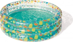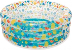 Această piscină gonflabilă pentru copii BESTWAY, cu pereți transparenți și imprimeu colorat cu fructe, aduce în grădină atmosfera verii și multe momente de joacă în apă. Datorită dimensiunilor compacte, încape și în spații mai mici, iar după golire se depozitează ușor.