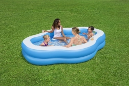 Piscina gonflabilă BESTWAY cu dimensiunile 270 × 198 × 51 cm este proiectată pentru relaxarea întregii familii. Două inele gonflabile asigură stabilitatea, în timp ce pereții conturați și cele două scaune integrate oferă un sprijin confortabil pentru spate. Suporturile practice pentru băuturi păstrează mereu la îndemână răcoritoarele, iar fereastra transparentă adaugă un element distractiv pentru copii.