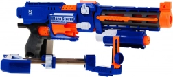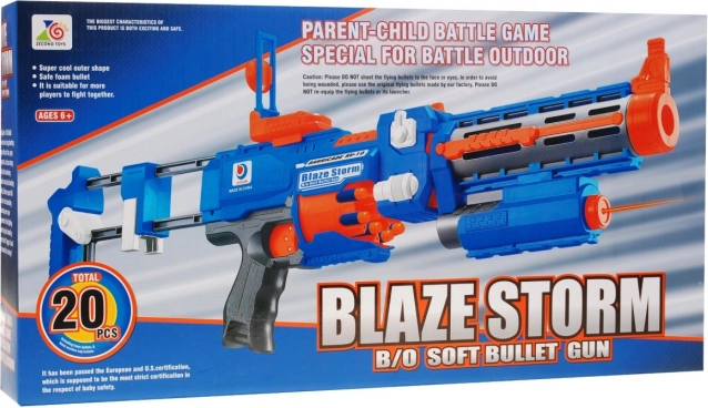 În pachet sunt 20 de proiectile din spumă și un vizor laser. Fereastra de service culisantă ajută la deblocarea săgeților blocate, iar comutatorul ON/OFF blochează în siguranță trăgaciul.