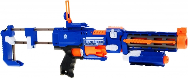 Blaze Storm aduce acțiune palpitantă în format 2‑în‑1: cu patul detașabil obții o pușcă stabilă pentru tir precis, iar fără pat îl transformi într-un blaster mare tip pistol pentru mobilitate rapidă. Mecanismul electric complet automat alimentează săgețile din magazia tambur de 10, cu până la 3 lansări pe secundă, astfel încât nu pierzi ritmul pe teren.