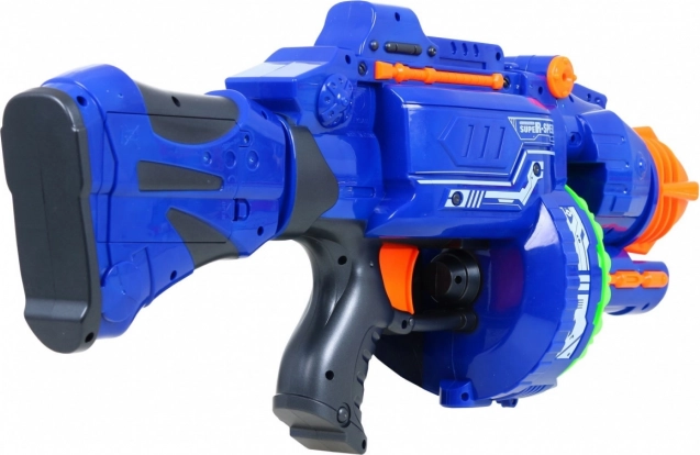 Blasterul BLAZE STORM oferă tragere rapidă și cursivă datorită mecanismului electric semi-automat. Încărcătorul tambur găzduiește până la 20 de darduri, iar în pachet găsești chiar 40 de bucăți, astfel că distracția poate dura mult. Datorită mânerului ergonomic și construcției din plastic rezistent, este ideal pentru jocuri în aer liber și confruntări acasă.