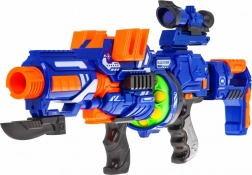Blasterul are o fereastră glisantă a ejectorului pentru îndepărtarea ușoară a unei bile eventual blocate, iar vizorul inclus ajută la o tragere mai precisă în jocurile de țintă. Datorită bilelor moi din spumă, jocul este sigur și potrivit pentru antrenarea reflexelor și a coordonării.