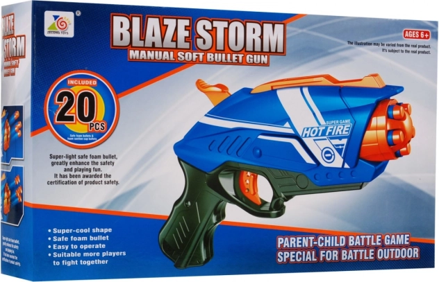 Descoperiți distracția plină de acțiune cu pistolul pentru copii BLAZE STORM Hot Fire. Acest blaster ușor și rezistent, în combinație albastru-portocaliu, folosește un sistem cu arc armat manual, datorită căruia copiii își antrenează în siguranță precizia și coordonarea. Încărcarea frontală simplă și focul unic asigură funcționare fiabilă fără baterii.