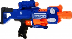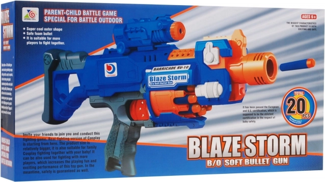 BLAZE STORM este un blaster electric pentru copii conceput pentru joc sigur și dinamic. Datorită compresorului electric complet automat (alimentare 3× AA, neincluse) gestionează tragerea rapidă fără armare manuală. Încărcarea frontală și tamburul cu capacitate de 10 gloanțe asigură acțiune fluentă, iar fereastra glisantă facilitează îndepărtarea săgeților blocate, dacă apar.