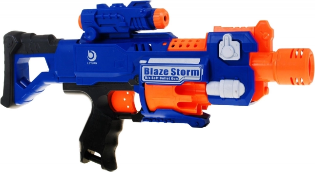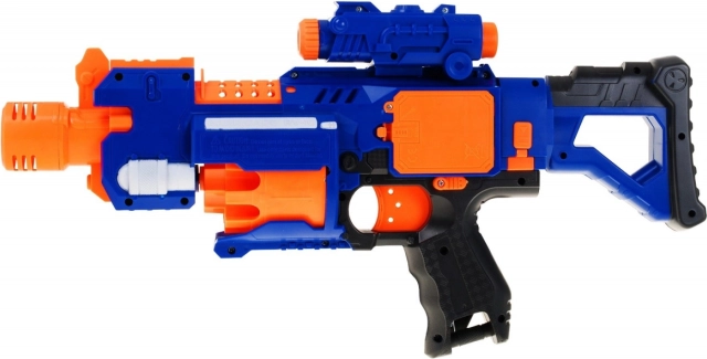 Patul detașabil transformă blasterul într-un pistol compact, țeava lungă cu două role rotative stabilizează focul, iar accesoriul de ochire inclus îmbunătățește țintirea. Siguranța este sporită de comutatorul ON/OFF pentru blocarea trăgaciului. În pachet găsești 20 de gloanțe din spumă, astfel încât nimic nu stă în calea unei distracții îndelungate și sigure, atât în grădină, cât și în casă.