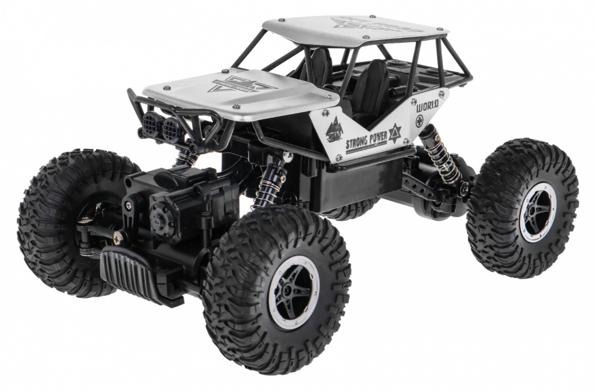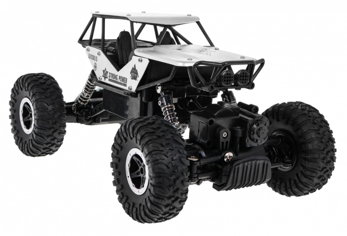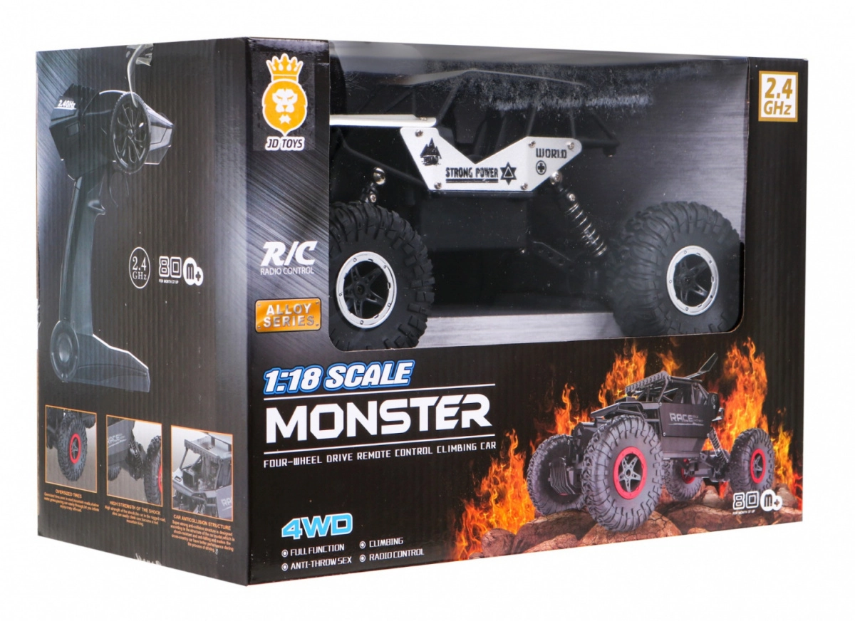 Descoperă adrenalina condusului cu mașina RC Crawler Monster la scară 1:18. Datorită tracțiunii 4x4, anvelopelor mari din cauciuc, suspensiei funcționale și construcției rezistente anti-coliziune, face față cu ușurință terenului dificil. Controlul pe 2,4 GHz asigură o rulare lină fără interferențe și o autonomie de aprox. 20 de minute per încărcare.
