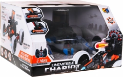 Vehiculul RC de luptă off-road combină viteza cu duelurile de tragere. Datorită controlului radio pe 2,4 GHz te bucuri de semnal stabil fără interferențe, poți concura cu mai multe mașini simultan și poți folosi controlul lin înainte/înapoi și dreapta/stânga. Turela rotativă cu înălțime de tragere reglabilă și vizorul laser te ajută să lovești ținta cu precizie maximă.
