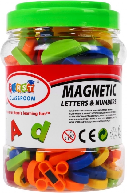 Descoperiți învățarea creativă prin joc. Acest set bogat, într-o cutie practică din plastic cu mâner, oferă tot ce este necesar pentru primele noțiuni de alfabet, numere și exerciții de calcul simple. Datorită magneților puternici, piesele aderă pe majoritatea suprafețelor metalice și sunt ideale pentru table magnetice.