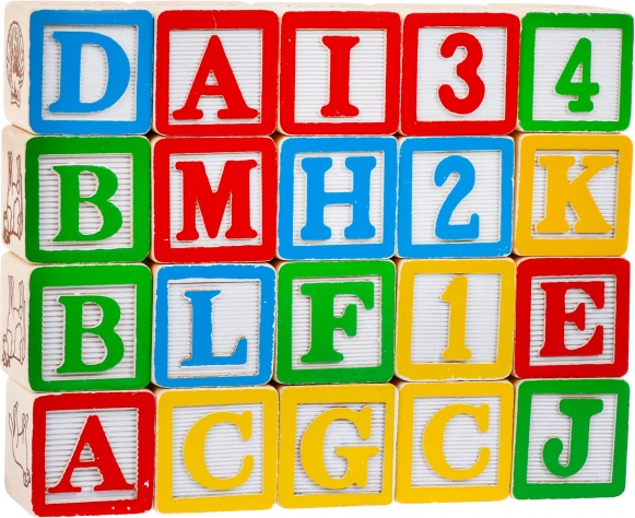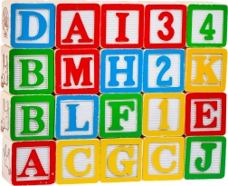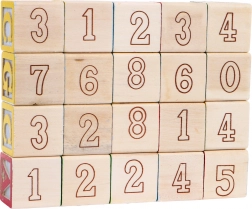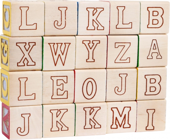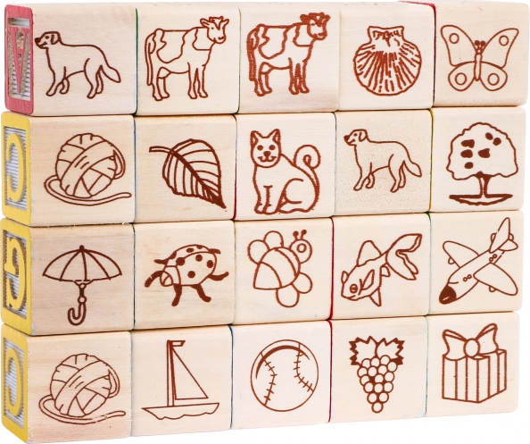 Setul include 20 de cuburi de lemn cu litere și imagini, care ajută copiii să învețe alfabetul și să-și dezvolte creativitatea.